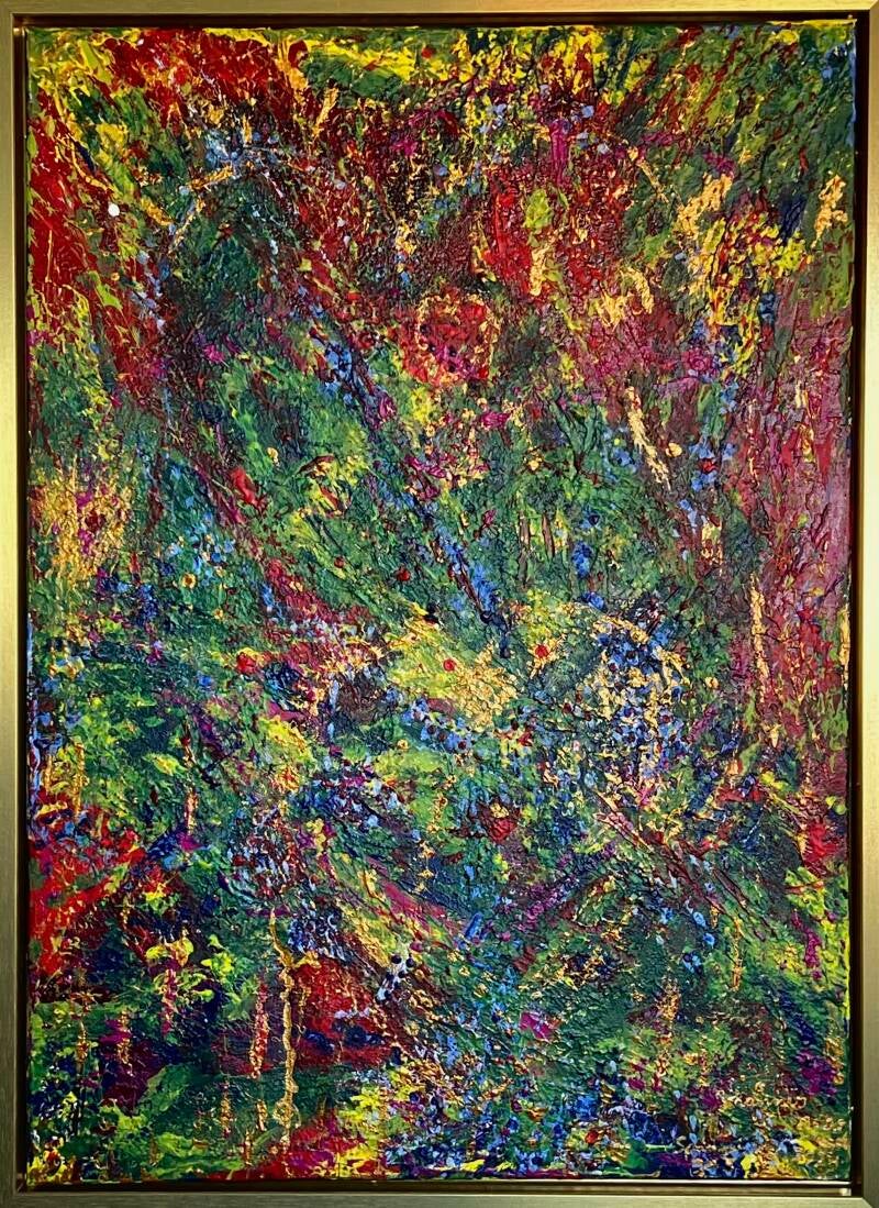 IMG_001 Farbenspiel 1, 30 x 40 cm, Acryl et al auf Keilrahmen mit Schattenfuge; 400 €