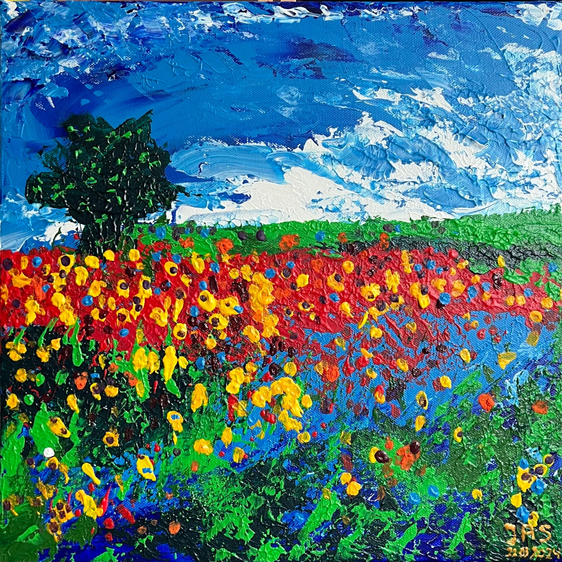Den Wolken entgegen; 40 x 40 cm; Acryl auf Keilrahmen; 2025