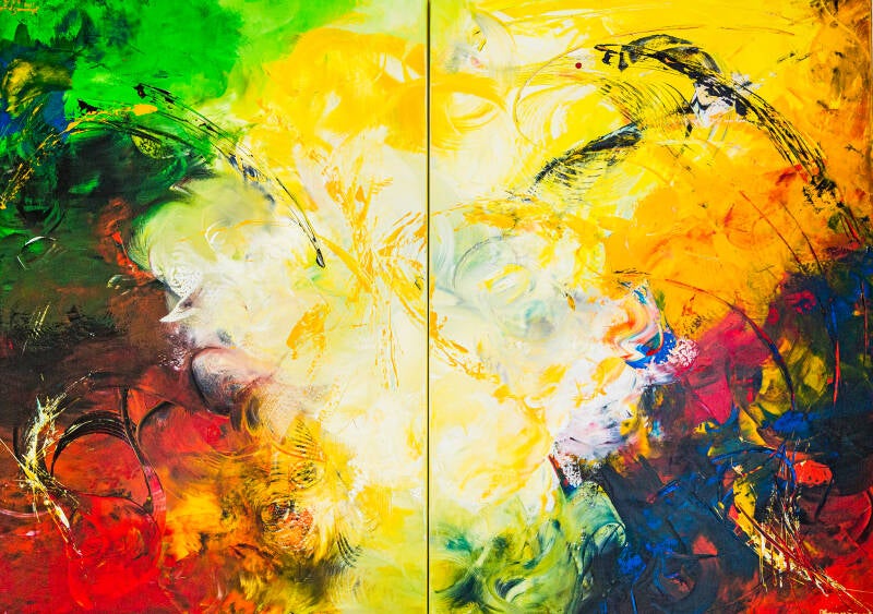 Im Kopf ist es bunt: 2 x 70 x 100 cm; Acryl et al auf Keilrahmen; ungerahmt