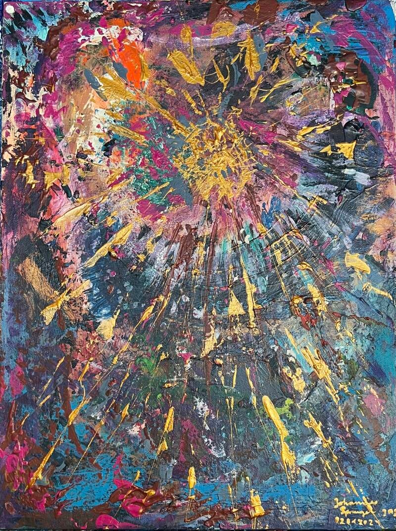 Wunder der Schöpfung oder Urknall gold; 100 x 100 cm ; Acryl auf Keilrahmen; gerahmt Schattenfuge et al